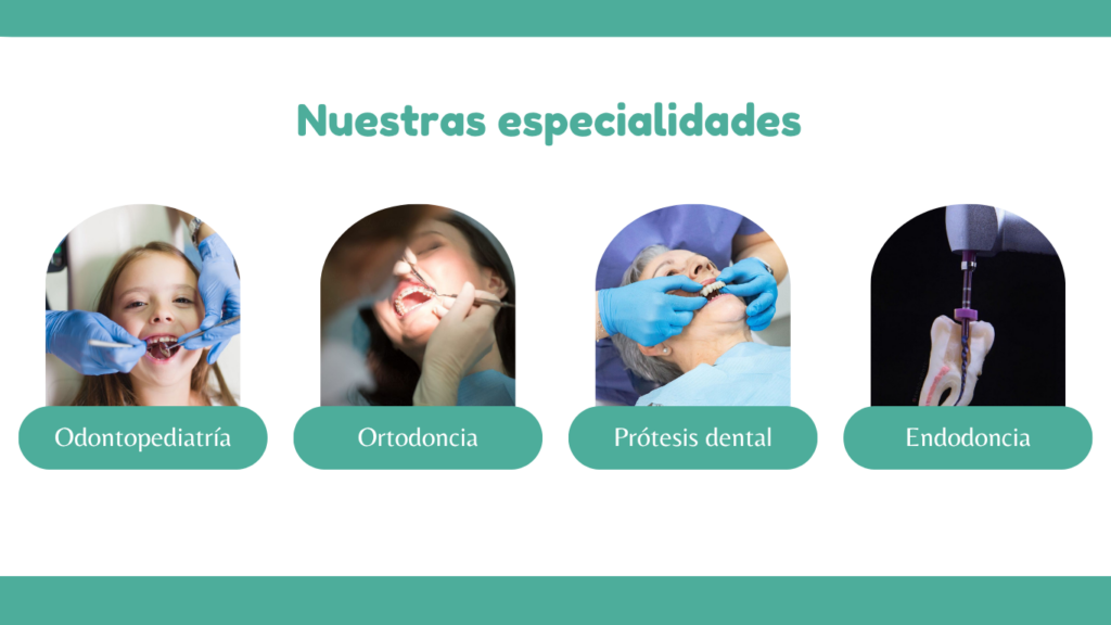 Contamos con profesionales capacitados en diversas especialidades, como Cirugía Bucal, Odontopediatría, Endodoncia, Ortodoncia, Implantes Dentales y Estética Dental, ofreciendo soluciones personalizadas para cada sonrisa.